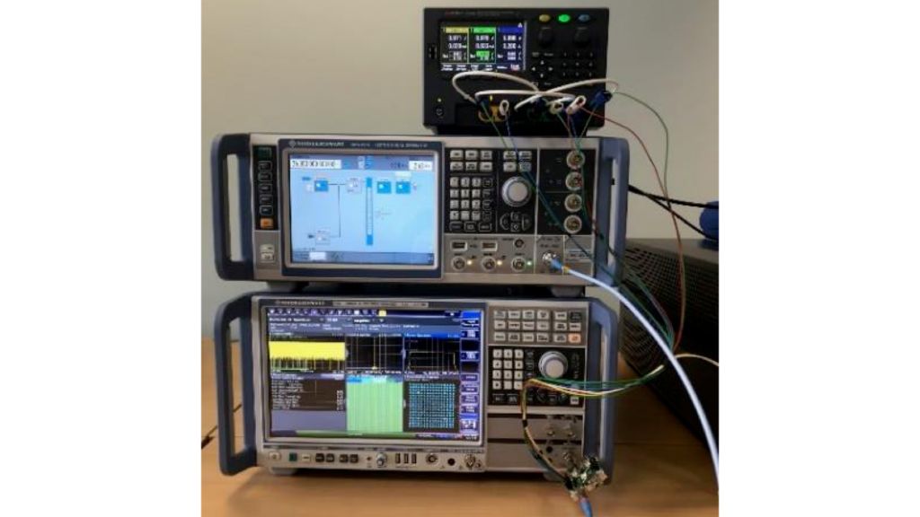 为了尽量确保测量难度,使用符合 5G NR 下行链路标准的波形进行测量,中心频率为 26 GHz,具有 400 MHz 带宽并采用 256 QAM 调制方案。