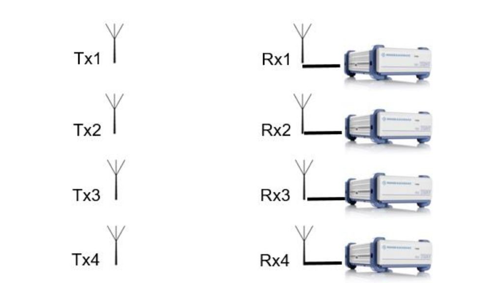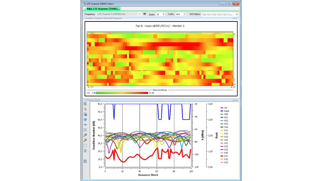 The MIMO test solution from Rohde & Schwarz (four R&S®TSME scanners plus R&S®ROMES) measures simple but important indicators like the channel matrix components and calculates the rank and the condition number of the channel matrix. It measures the MIMO feasibility of the environment and estimates the data throughput based on key parameters.