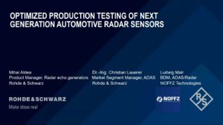 Realization of higher levels of autonomous driving and ADAS is driving up the complexity of automotive radars with higher bandwidth, MIMO and imaging capabilities. At the same time, radar sensor suppliers face pressure to reduce production testing cost, cycle time and down time whilst increasing automation and addressing the needs of a wide range of sensors. NOFFZ Technologies are experts in supplying modular systems optimized for the individual requirements of each customer, for validation and end-of-line radar sensor testing whilst R&S are the market leader in radar target generation, now applied to production testing. Join this webinar to find out how the combined instrument and system test expertise of R&S and NOFFZ enables you to ensure optimized production testing of next-generation radar sensors.