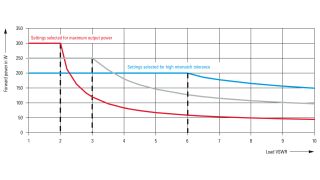 R&S®BBA130 提供最大输出功率和高失配容差选项,前者适用于阻抗匹配良好的应用(最大 VSWR 约为 2:1),通常用于设计和产品验证测试;后者条件下放大器的功率逐渐减低(最大 VSWR 约为 6:1),适用于天线匹配较差的 EMC 应用,或输入阻抗与 50 Ω 相差较大的被测设备测量。放大器必须尽量长时间持续提供所需的输出功率。