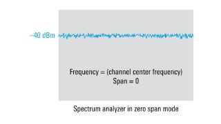测量信道功率的另一种方法是使用频谱分析仪的零跨度模式。分析仪不扫描频跨或频率范围,而是将频跨设置为零,并驻留在信道的中心频率上。分析仪测量分辨率带宽内的功率,信道功率显示为一条线。