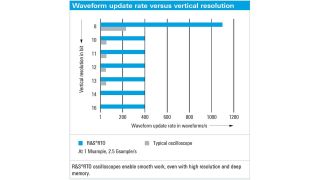 高分辨率 (HD) 模式将 R&S®RTE、R&S®RTO 和 R&S®RTP 示波器的垂直分辨率最高增加到 16 位。波形清晰度更高,而且显示在其他情况下会被噪声遮蔽的信号细节。用户可以得到更精确的分析结果。