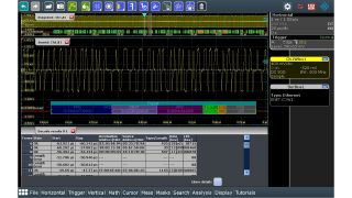 R&S®RTP、R&S®RTO 和 R&S®RTE 示波器支持对 10BASE-T 和 100BASE-TX 以太网的解码。解码设置仅需数秒。用户能够以颜色编码的报文形式和/或在解码表中查看结果,并作详细分析。使用硬件加速触发,用户能够有效且可靠地识别错误。