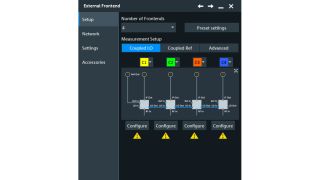 The RTP oscilloscope controls the external frontends via LAN interface. With the RTP-K553 external frontend control option, the setup and control is completely integrated in the oscilloscope's user interface. Additionally, the RTP corrects the frequency and phase response of the external frontends, based on the individual characteristic stored at the external frontends EEPROM.