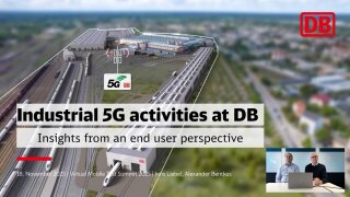 This talk presents how Deutsche Bahn is using industrial 5G to digitalize and automate its maintenance facilities, sharing insights from a test network in Krefeld, outlining future 5G plans, and highlighting requirements for supplier industries.